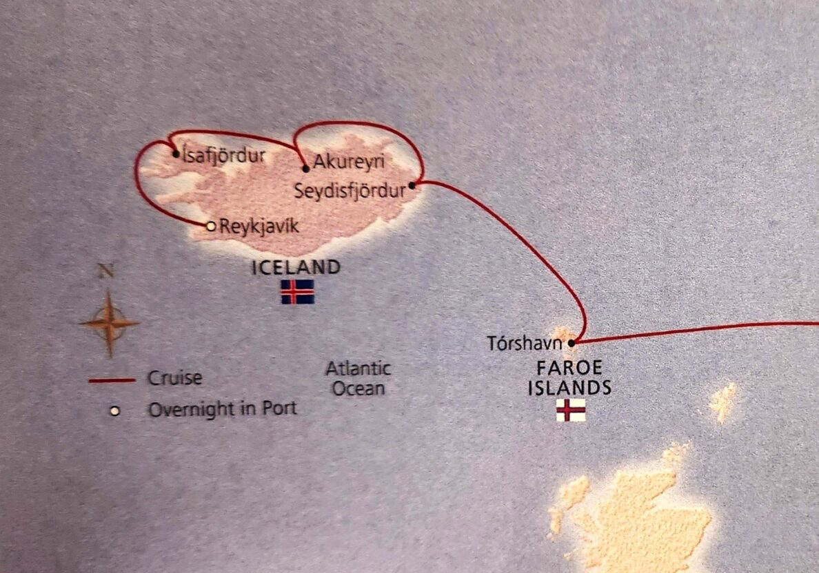 We departed London for our 2.5-hour flight, via British Airways, to Keflavik, the international airport serving Reykjavik, the capital of Iceland. Upon landing, the driver we had pre-arranged (Viator) met us and delivered us to the cruise terminal in Reykjavik, about a 50-minute drive.