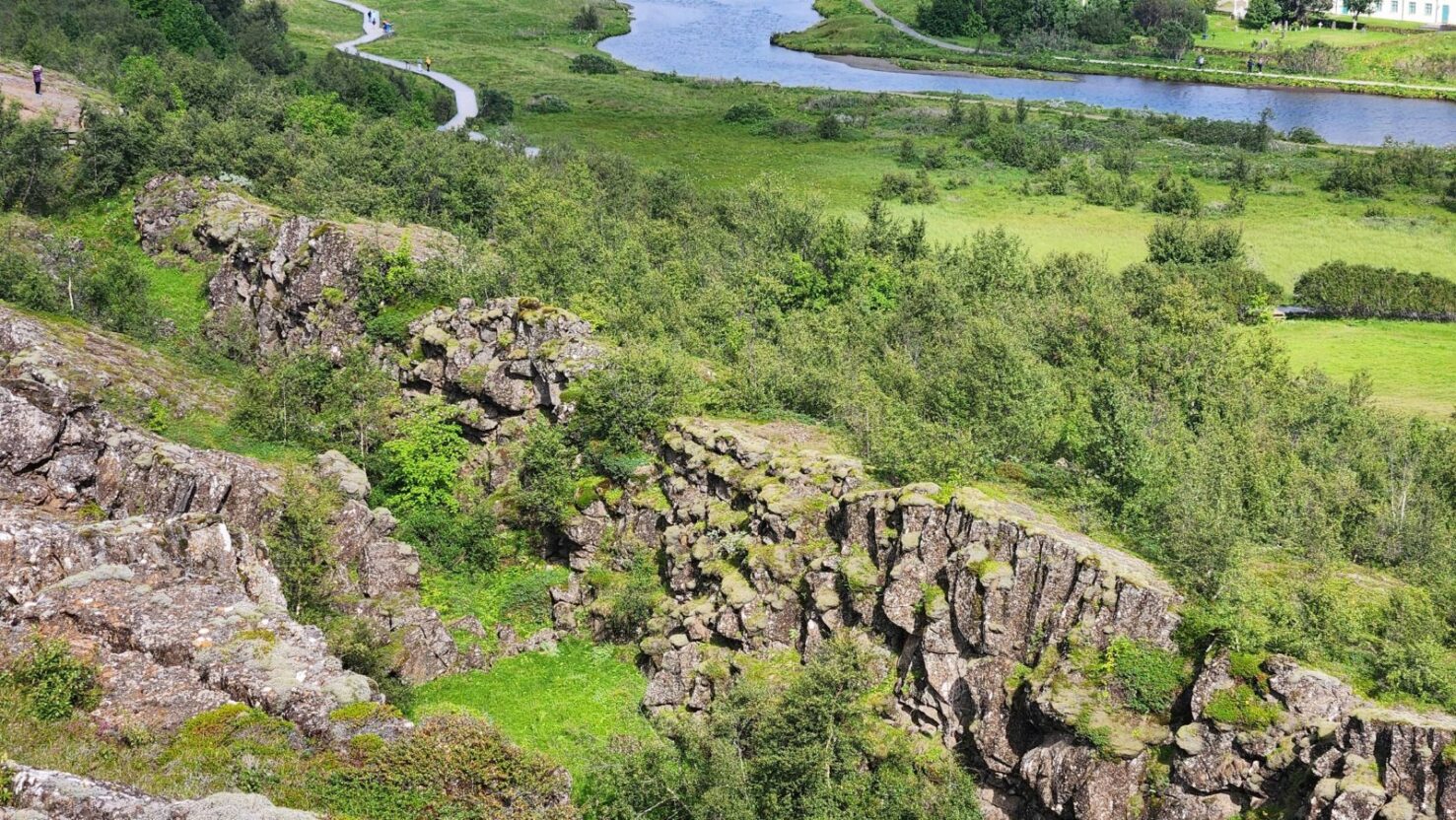 Thingvellir (Þingvellir) National Park sits in a rift valley caused by the separation of 2 tectonic plates (North American and Eurasian Plates), with rocky cliffs and fissures like the huge Almannagjá fault. At different points within it, it is possible to see both cliffs that mark the ends of the continents. Walking between two continental plates was sort of weird but truly amazing. The park is a UNESCO World Heritage Site and also the location were many scenes in the Game of Thrones were filmed.
