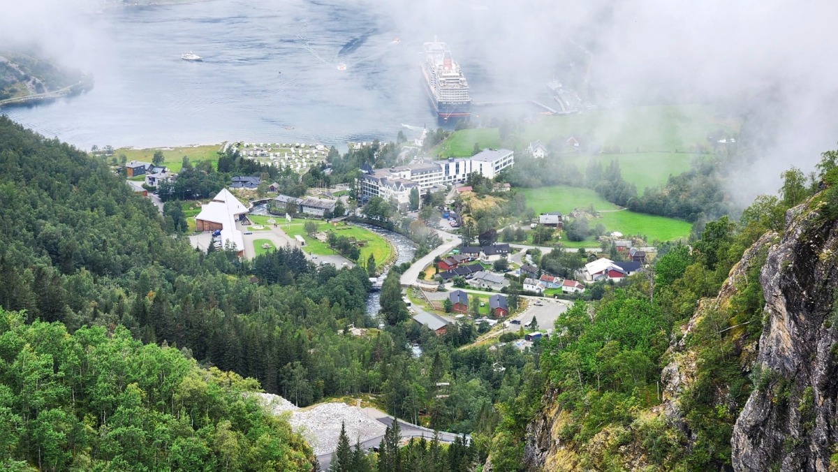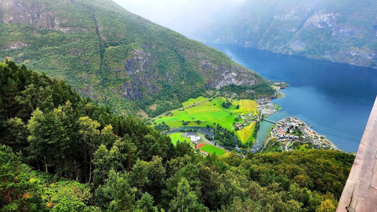 Looking down on Flåm during our coach tour to the Stegastein. (L.Compisi)