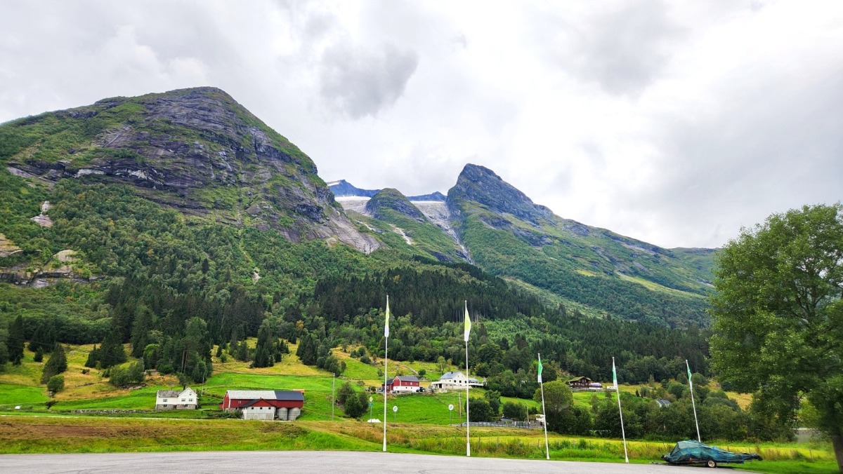 The drive up Nibbevegen Road, which winds up from Geiranger with 11 hairpin turns and a 10% gradient was thrilling and culminated in jaw-dropping scenery. Our tour allowed for multiple stops to view this amazing fjord from various elevations. We were surprised to see a cycling race underway up the road which was exhausting just to watch. We stopped at the stomach churning Geiranger Skywalk, a dramatic viewing platform with glass railings and a sheer drop beneath your feet. It delivers panoramic views of the Geirangerfjord, surrounding mountains, and even the Blåbreen glacier.