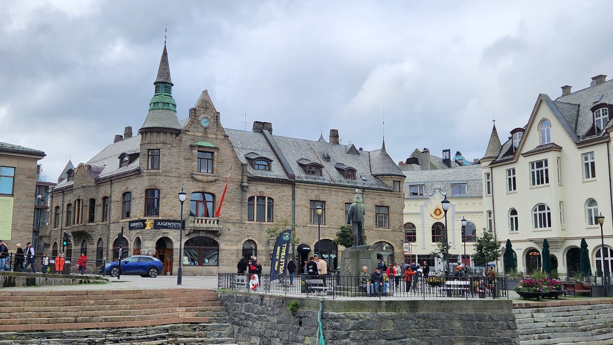 We went on a guided walking tour which was excellent. We strolled through streets lined with whimsical buildings, each adorned with turrets, curved facades, and floral details. Ålesund’s iconic architecture is the result of a well-orchestrated rebuild after a fire in 1904, making it one of Europe’s finest examples of Jugendstil (Art Nouveau) design.