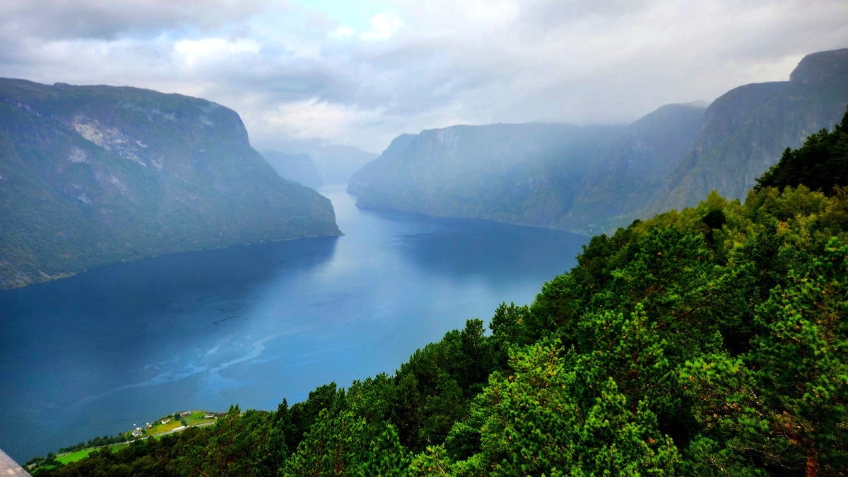 Though Flåm is home to only a few hundred residents, it’s one of the country’s most beloved destinations—especially for travelers chasing dramatic landscapes and unforgettable rail journeys. Picture towering cliffs rising from the water, creating dramatic scenery.