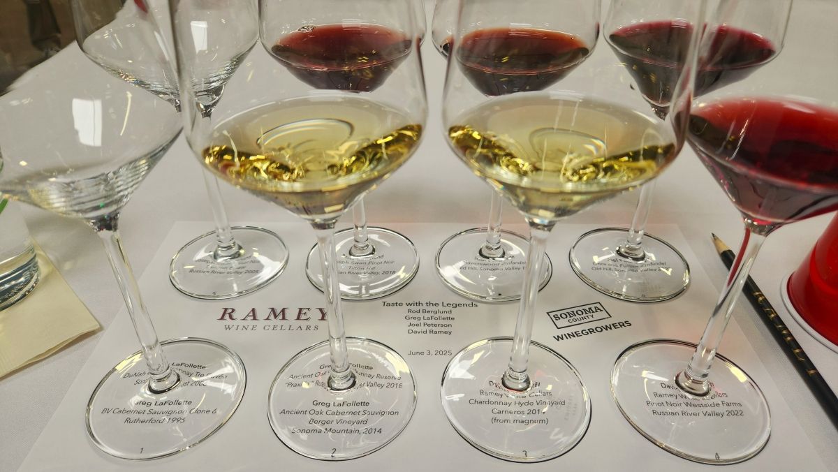 Day Two began at Ramey Wine Cellars for a tasting with some of the Sonoma County #WineLegends that felt like stepping into the living history of the region. Starting with David Ramey, the father of Chardonnay; Rod Berglund, founding winemaker of La Crema and Owner/Winemaker of Joseph Swan Vineyards; Joel Peterson, aka the godfather of Zin and Founder and Winemaker at Ravenswood Winery and now founder and winemaker at Once and Future Winery has been a winemaker for 50 years and, finally, Greg LaFollette of Flowers Vineyards and Winery and now Marchelle Wines, arguably one of California’s most influential winemakers of the past three decades.