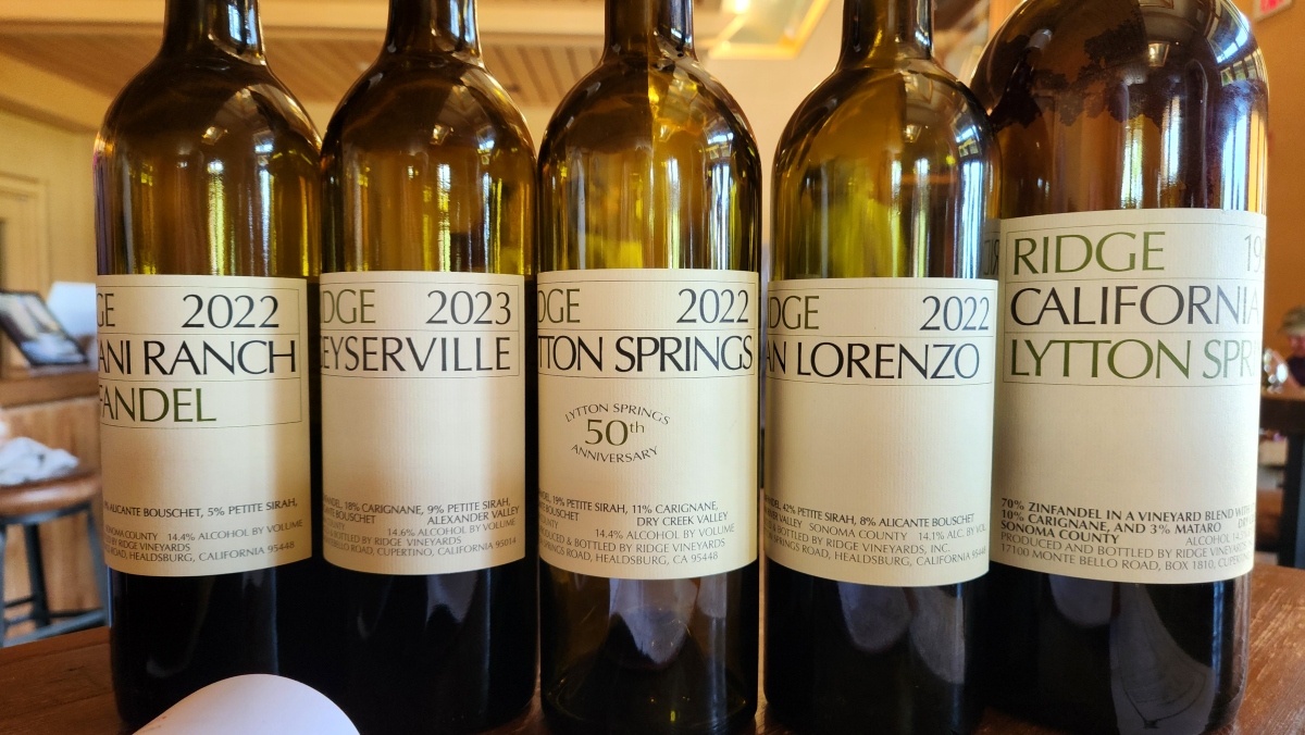 The afternoon carried us to Ridge Vineyards Lytton Springs location, where a seminar on Sonoma Zinfandel, led by Assistant Winemaker, Michael ‘Mike’ Bairdsmith, unfolded like a masterclass in microclimates. Five different Zinfandels were poured, representing five AVAs across the county. It was a vivid demonstration of how one grape varietal can express itself in strikingly different ways depending on soil, elevation, and exposure.