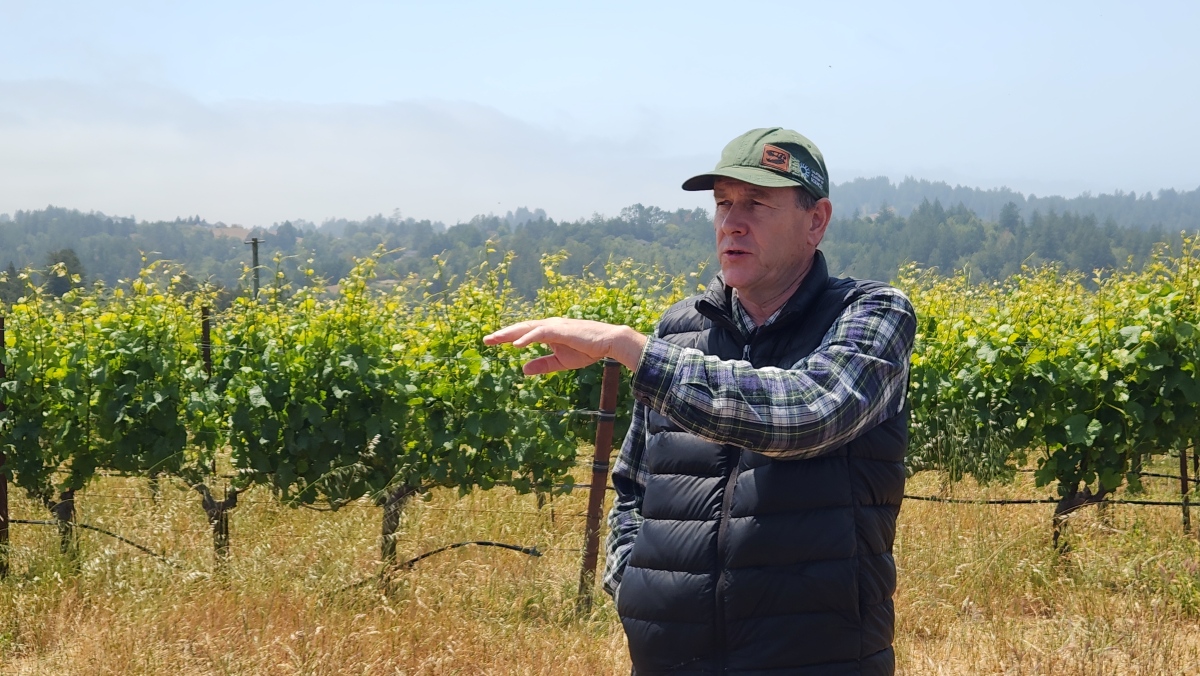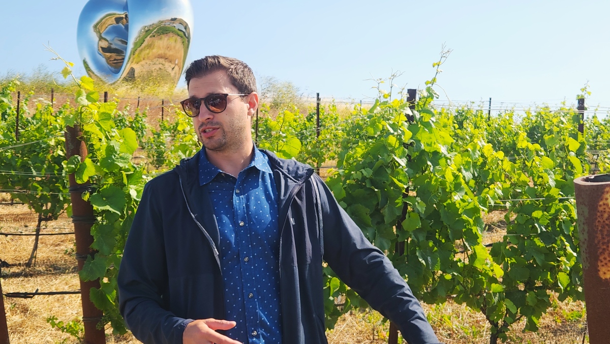 A member of Donum’s Vineyard team explains Donum’s approach to regenerative farming. (L.Compisi)