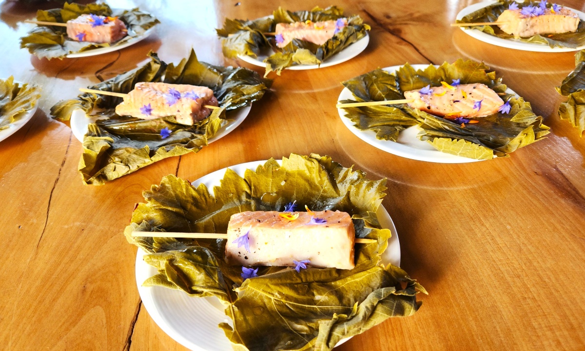 Bruchette of Alaskan King Salmon, paired with their 2022 Sangiovese. (L.Compisi)