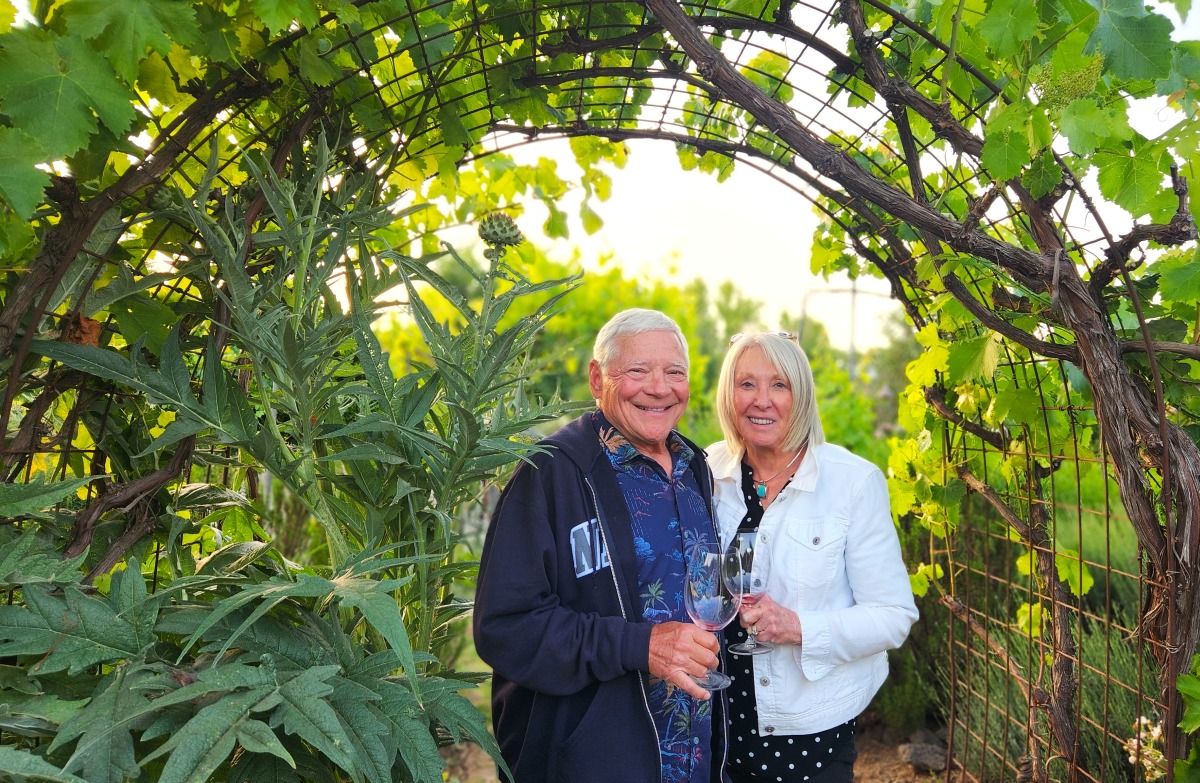 The authors enjoying the delightful gardens at DaVero Winery. (L.Compisi)